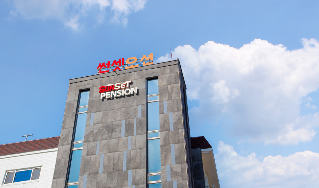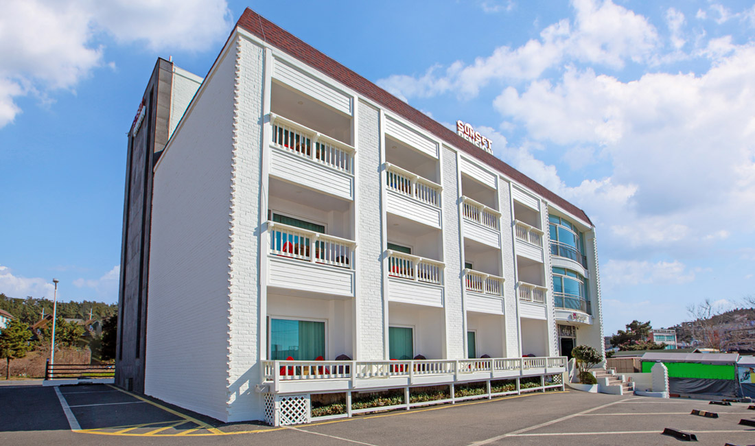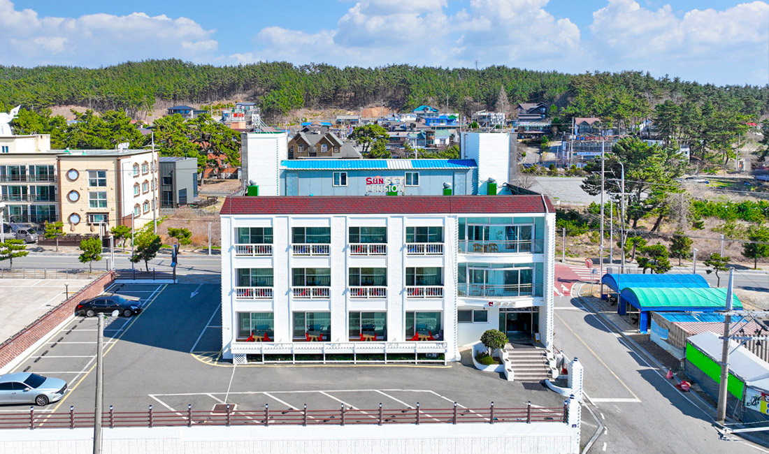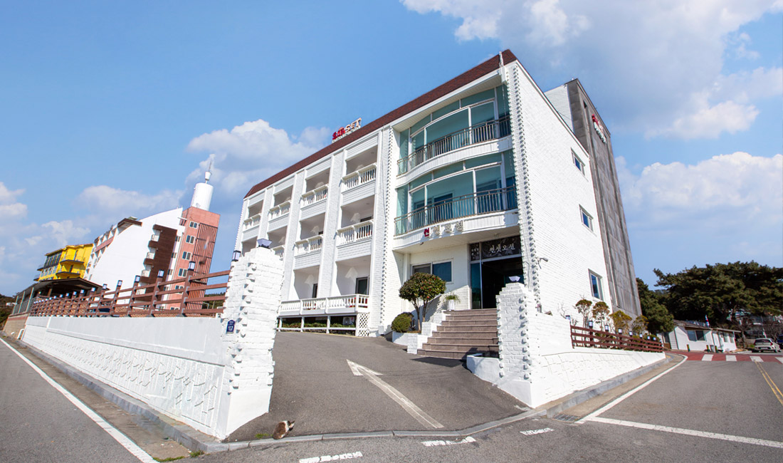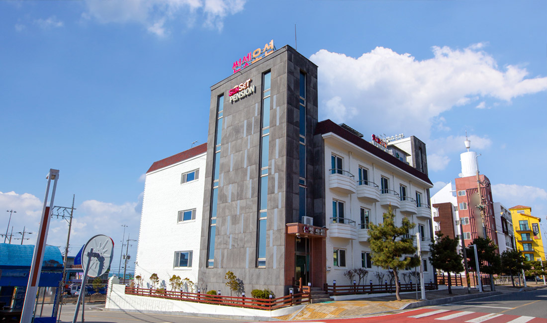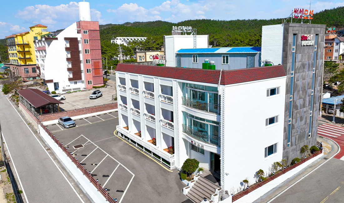 만리포해수욕장과 50m 정도 거리에 위치한 만리포 썬셋오션의 외부전경을 미리 보실 수 있습니다.